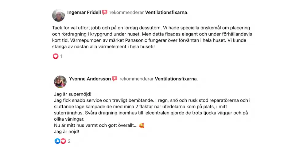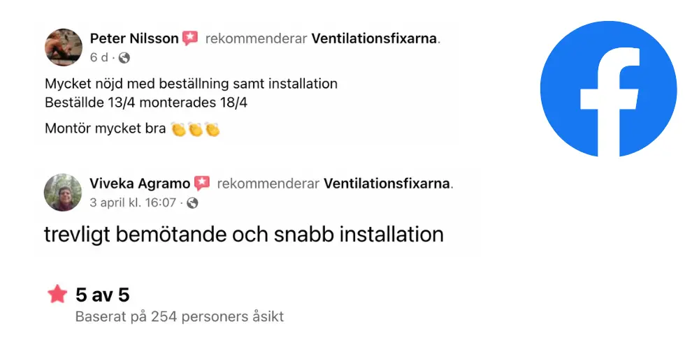 "Fantastiskt trevlig kundservice och Installatören gjorde ett kanonjobb. Jag kan verkligen rekommendera Ventilationsfixarna."